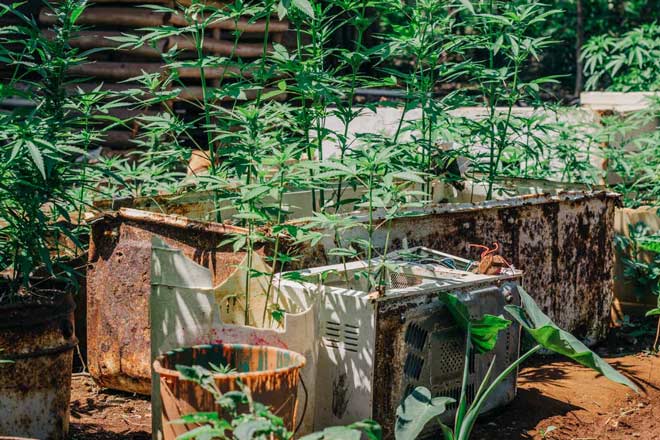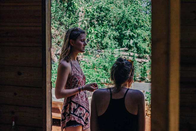 Neben den vielen Tomaten, Gurken, Auberginen, Zucchini, Kürbissen, Juka Wurzeln, Aloe Vera, Kräutern, Mangos, Ananas und vielen anderen Pflanzen wächst in seinem Garten auch jede Menge Cannabis. Er kümmert sich jeden Tag darum, als wären es seine Kinder. Der Ertrag ist gigantisch, denn durch das Klima hier kann er ganzjährig Outdoor anbauen – ohne Chemie oder gentechnisch veränderten Samen. Joe hat kleine Hunde und große Pläne. Das Haus in dem er spartanisch wohnt, ist noch nicht ganz fertig. Der Innenausbau fehlt noch. Er will daraus ein Hostel bauen, um mit anderen Reisenden ins Gespräch zu kommen. So kann er ihnen sein Leben im Einklang mit der Natur zeigen. Joe nimmt das Leben sehr gelassen, gibt sich Zeit und legt viel Wert auf körperliche, geistige und soziale Gesundheit. Seine Ökobilanz ist gleich Null. Bei ihm gibt es nur Bioabfall oder er findet anderweitig Verwendung für Plastikflaschen & Co.