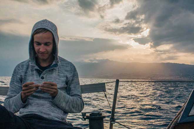 Segeln hat unzählige Facetten. Das nicht immer alles sonnig, perfekt und sahnig verläuft versteht sich von selbst. Das macht ja den Reiz aus. Eine von den anstrengenderen Etappen haben wir gerade hinter uns. Los geht’s in Ibiza, erstmal Richtung spanisches Festland und dann in die Straße von Gibraltar – am besten nach Malaga. Da uns der Wetterbericht für Ende der Woche starke westliche Winde vorhersagt, wollen wir so schnell es geht Meilen nach Westen gut machen. Kurz vorm Kap erwischt es uns dann allerdings doch. Viel Wind und vor allem hohe Wellen erschweren das Vorwärtskommen. In der Nacht geht mit den Segeln allein nichts mehr.