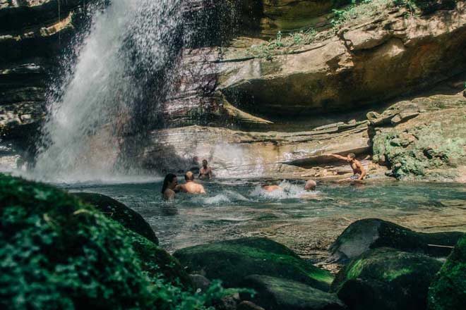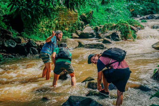 Cuban farmers are coming back from their fields in the mountains, riding through the riverbed on their horses as we cross the wobbly bridge towards a tiny restaurant. If you've got the time, come here! The ride up here itself is already a little adventure!
