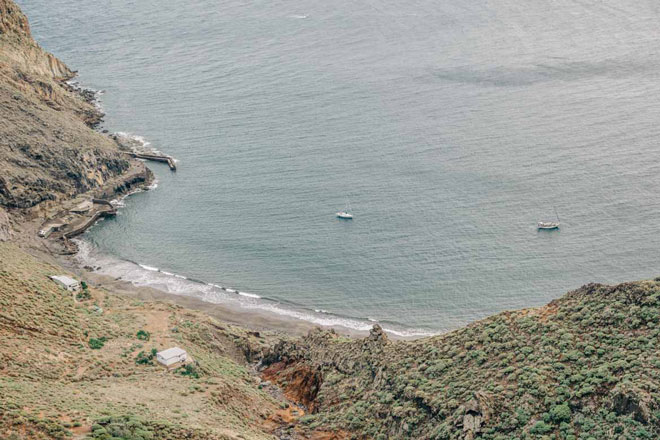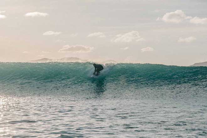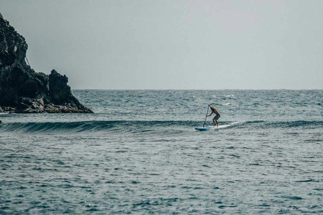 Die kreisrunde Bucht ist ein Ort, an dem man vermutlich ewig bleiben könnte. Die zwei Tage, die wir dort verbringen, sind definitiv zu wenig! Noch dazu war für die Tage quasi kein Swell vorhergesagt und das Wasser bei unserer Abfahrt in Porti spiegelglatt. Trotzdem können wir an beiden Tagen Wellen reiten, im kleinen Stil. Die kleine Bucht ist nach Norden hin geöffnet und wenn Swell aus Norden steht, wird’s hier richtig gut.