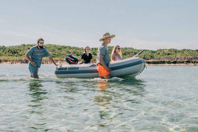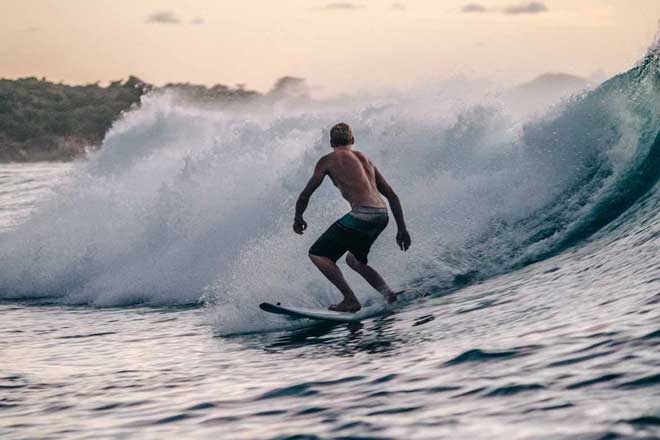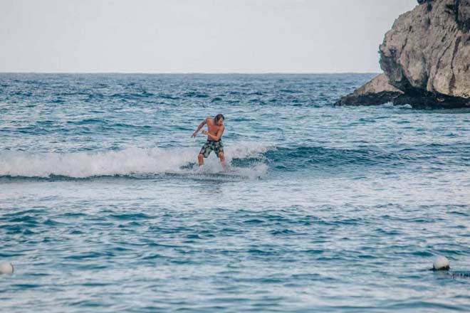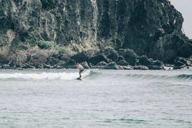There's just the land and the sea as it's been since ever! We heard that sometimes the waves in the north-east coastline are quite good, but during our time, there was no swell at all. You'll have to get along by your own. Especially when you do have your own boat with you, there are hundreds of lonely islands just waiting to surf and explore.