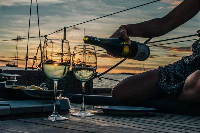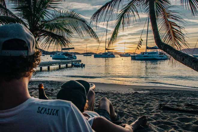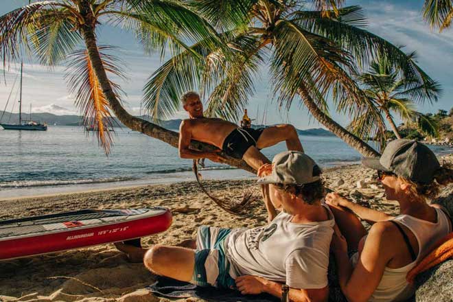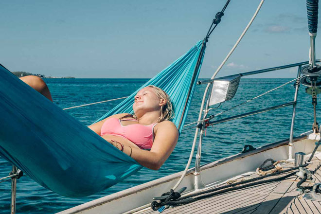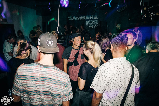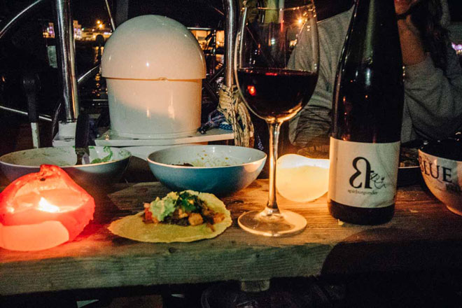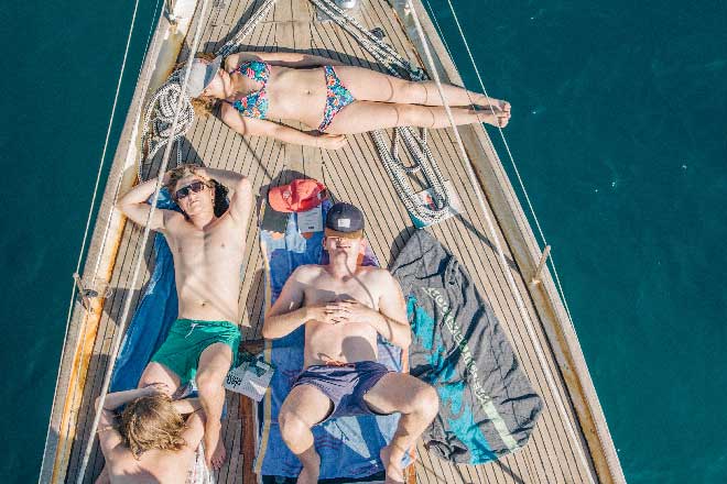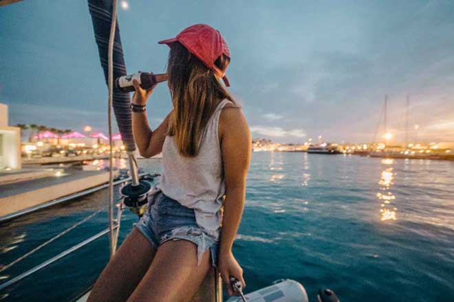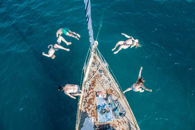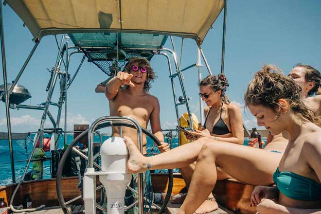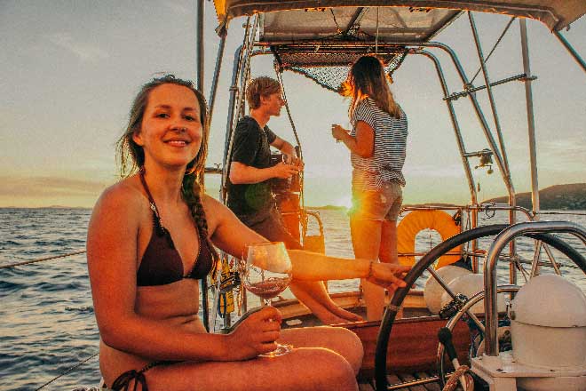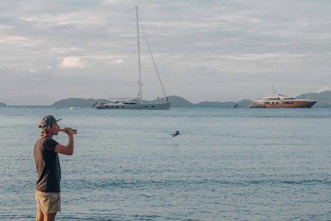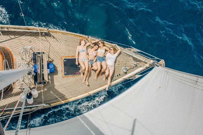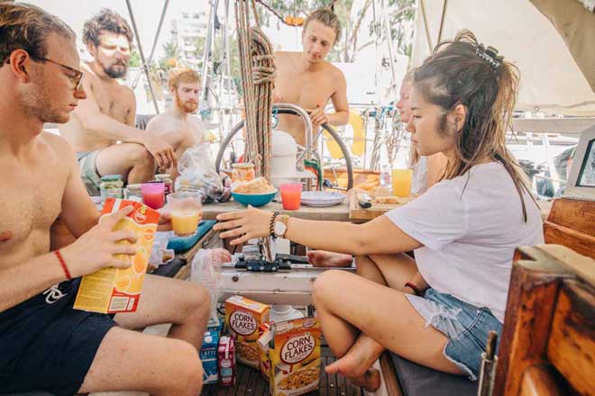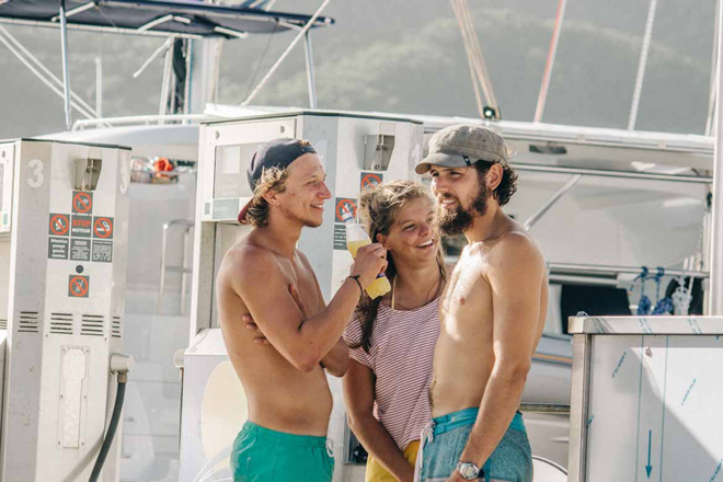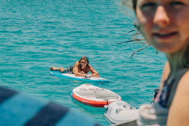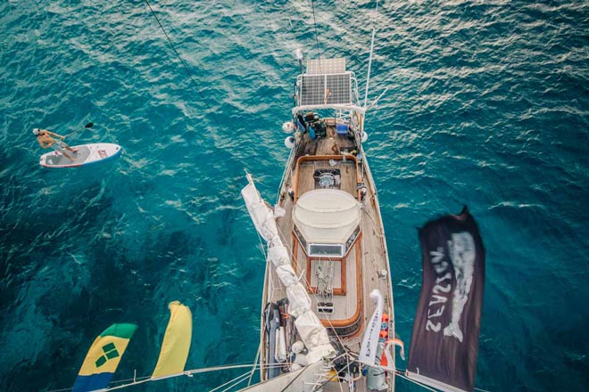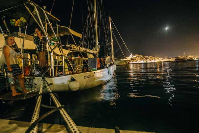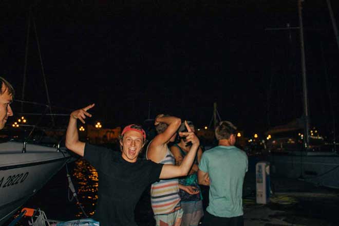 Von Weitem hören wir schon die Bassboxen dröhnen und so freuen wir uns wie Teens, die gerade zum ersten mal ihren Führerschein in den Händen halten. Der Ablauf der kommenden 48-Std von Schlafsack auf bis Schlafsack zu sah dann in etwa so aus: Schlafsack auf – Baden – Bettstützen lackieren – Frühstück – Fugen raus – Mittagessen – Baden – Siesta – Vap - Fugen raus – GEILE WEINE- Kippe – Fugen raus – immer noch Fugen raus – keine Lust mehr – SUP - Salzwasserdusche – Kippe – Tinder - Abendessen – Mische – Longpape – Dinghy zum Land - Spezialeingang - Dancen all night long – Schöne Menschen – Schätze teilen – Handy versenken – Taxi – Club Barbarella – Sonnenaufgang – Pizza – Taxi – Dinghy – Schlafsack zu – Schlafsack auf – Baden – Bettstützen lackieren – Frühstück – Fugen rein – Mittag – Baden – Siesta –