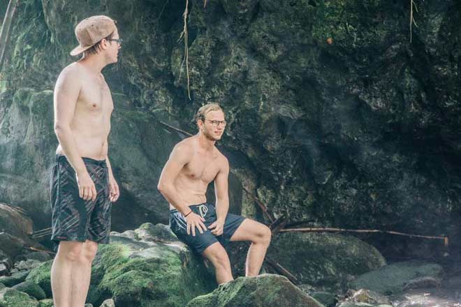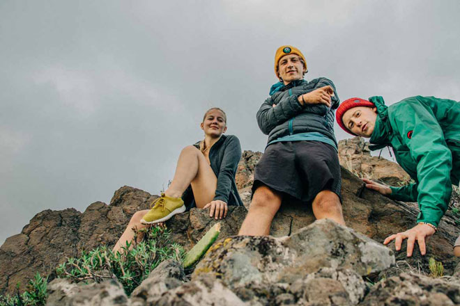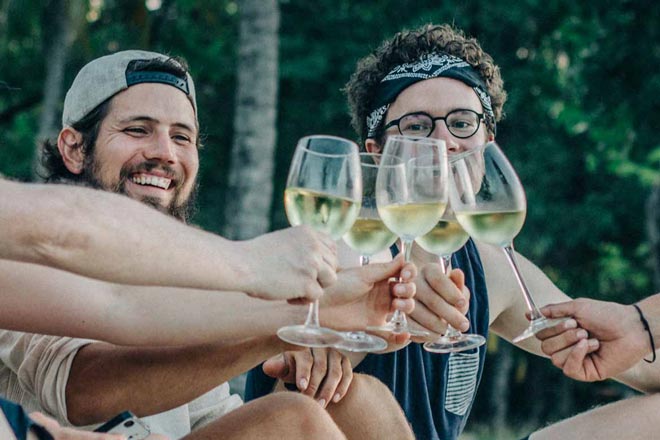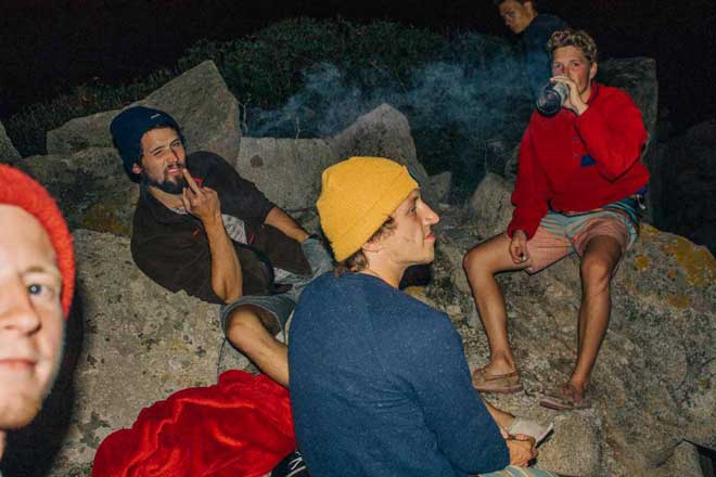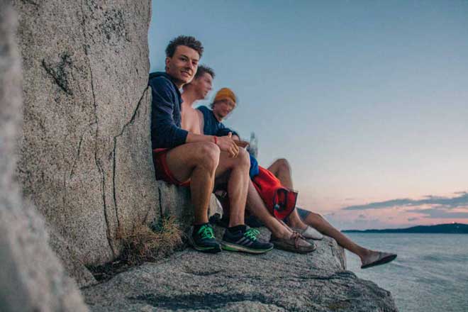 Oben angekommen setzen wir uns auf den Fels, wie Hühner auf einer Stange. Wir sippen Wein, genießen den Moment, den sagenhaften Ausblick. Wir lassen die letzten Tage Revue passieren. Fetzige Männercrew - schön wars. Vermisst haben wir wenig. Die Frauen etwas. Der Sonnenuntergang wird langsam schwarz, die Flaschen werden leer. Alle sind glücklich. Oberglücklich. Ein magischer, ganz besonderer Moment, den wir sechs Boys uns teilen. Nur einer hat etwas auszusetzen: „Fuck Mann, warum bin ich eigentlich nicht schwul?!"