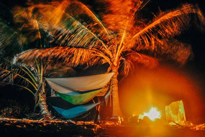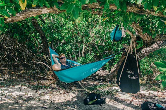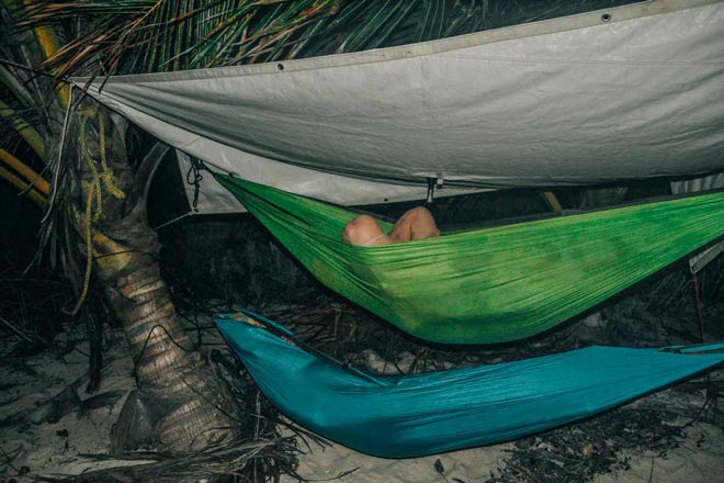 Just open the door and enter, the security guards are quite nice and probably allow you to stay. There you'll find hammocks and outdoor beds, build into the picturesque rocks. Very nice!
