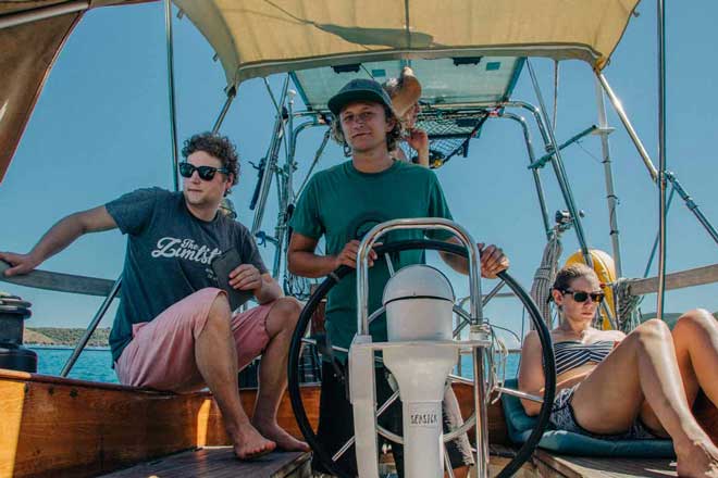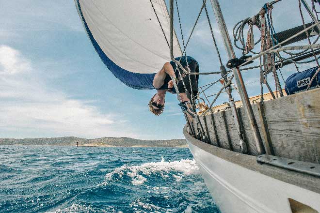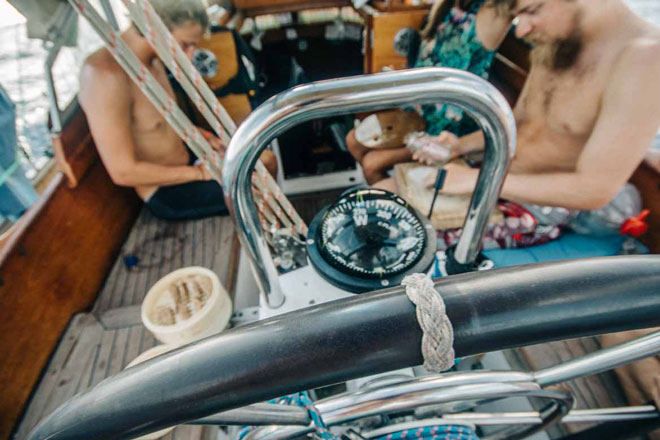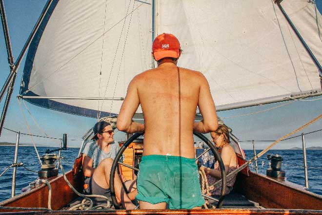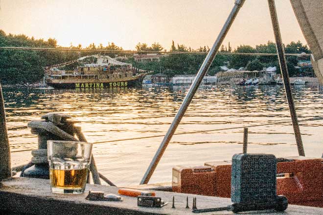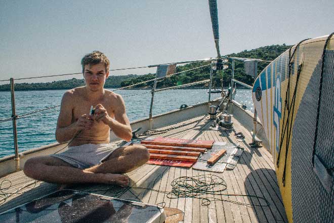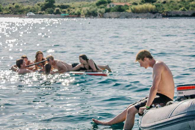 Vap – Fotos – Fugen rein – T-Shirt voller Fugenmasse – Klebeband abziehen – in frische Fugen reinlaufen – Keine Lust mehr – Fugen rein – GEILE WEINE – Tinder - Kochen – Rummische – Longpapes – Dinghy zum Land – Spezialeingang – Engländerinnen – Lachgas – Stickern – Dinghy – Schlafsack zu. Repeat. Geheimtipp: Die Kombi aus harter Decksarbeit und dem Absteppen beim Garden Festival mit lauter schönen Menschen aus England ist sehr zu empfehlen. Das Festival war eins der besten oder sogar das beste?! Mit Yacht kann man direkt davor ankern. Die ohne Yacht schlafen in Ferienwohnungen in Tisno, im „Garden“ oder pennen im Zelt.