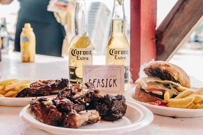 To all the Foodies out there: Jamaica is way more interesting for you than the smaller caribbean islands! There's lots of streetfood and many small and cheap restaurants. Most of the time we're the only white people there, but that's great! They offer chicken served in a thousand different ways, curry goat and ox tail, fish, lobster and the national dish “ackee & saltfish”.