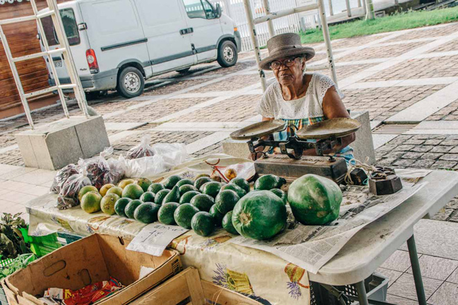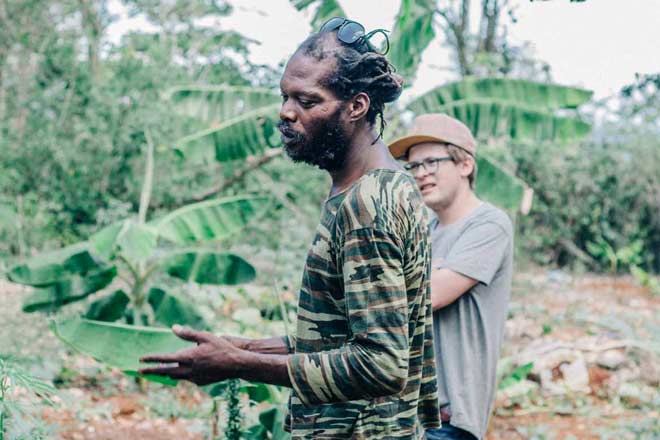 Als wir Joe kennenlernen, sitzen wir auf einer Bank und trinken kühles Bier. Wir haben es in der Bar auf der anderen Straßenseite gekauft und genießen damit die letzten Sonnenstrahlen der untergehenden Sonne. Joe ist der Fünfte, der uns die Hand gibt und ein kleines Gespräch startet, denn wir sitzen hier ziemlich auf dem Präsentierteller. Die Bar ist voller Einheimischer und da stechen wir drei Weißbrote schon ordentlich aus der Menge. Joe ist ein sympathischer Typ, macht Witze, lacht ansteckend und erzählt uns von seinem Zuhause. Er ist ein Rasta, lebt am Waldrand und baut dort Gemüse, Obst und Ganja an. Er trinkt keinen Alkohol, isst kein Fleisch, verwendet keinen chemischen Dünger und ernährt sich von dem, was er anbaut. Als Dünger verwendet er verschiedene Sude und Pferdeäpfel. Sie kommen von seinem Pferd, welches im Garten nebenan abhängt und ausschließlich dafür da ist. Er raucht täglich Ganja, denn „je higher du bist, umso näher bist du Gott“ erzählt er.