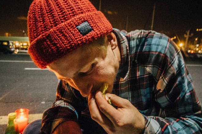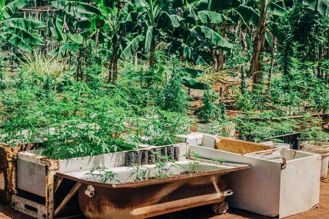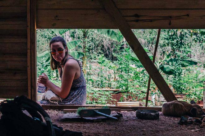 Neben den vielen Tomaten, Gurken, Auberginen, Zucchini, Kürbissen, Juka Wurzeln, Aloe Vera, Kräutern, Mangos, Ananas und vielen anderen Pflanzen wächst in seinem Garten auch jede Menge Cannabis. Er kümmert sich jeden Tag darum, als wären es seine Kinder. Der Ertrag ist gigantisch, denn durch das Klima hier kann er ganzjährig Outdoor anbauen – ohne Chemie oder gentechnisch veränderten Samen. Joe hat kleine Hunde und große Pläne. Das Haus in dem er spartanisch wohnt, ist noch nicht ganz fertig. Der Innenausbau fehlt noch. Er will daraus ein Hostel bauen, um mit anderen Reisenden ins Gespräch zu kommen. So kann er ihnen sein Leben im Einklang mit der Natur zeigen. Joe nimmt das Leben sehr gelassen, gibt sich Zeit und legt viel Wert auf körperliche, geistige und soziale Gesundheit. Seine Ökobilanz ist gleich Null. Bei ihm gibt es nur Bioabfall oder er findet anderweitig Verwendung für Plastikflaschen & Co.