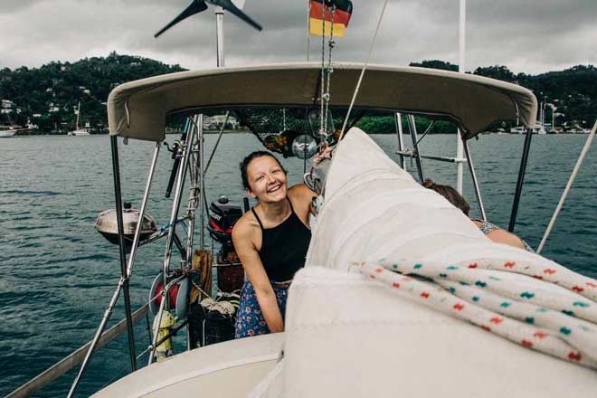 Habt ihr euch schon mal vorgestellt eine Yacht zu besitzen? Ein echt krasses Gefühl. Es fühlt sich irgendwie gut an. Eine ist aber genug und die am besten auch mit anderen geteilt, weil wir sind ja auch gegen überflüssigen Konsum. Ganz und gar nicht überflüssig sind neben zwei Kiteboards und sechs Kites, zwei Surfbrettern, SUPs, eine Luftmatratze, Hängematte, die Rettungsinsel, das Beiboot, Kokosnüsse, Seekarten, Hemden und Buntstifte. Da wir unser Geld lieber an die Armen verschenken, sind wir derzeit fleißig dabei Briefe zu schreiben. Der letzte ging an bleed-clothing, einem Klamottenhersteller mit Kork- und Hanf-Produkten. Vielleicht können sie uns mit einem Hemd oder Hose unter die Arme greifen. Neben der täglichen Arbeit im Office, müssen wir die Yacht natürlich auch kennenlernen und alles auf Herz und Nieren prüfen, bevor wir die Leinen los schmeißen und Richtung Westen aufbrechen.