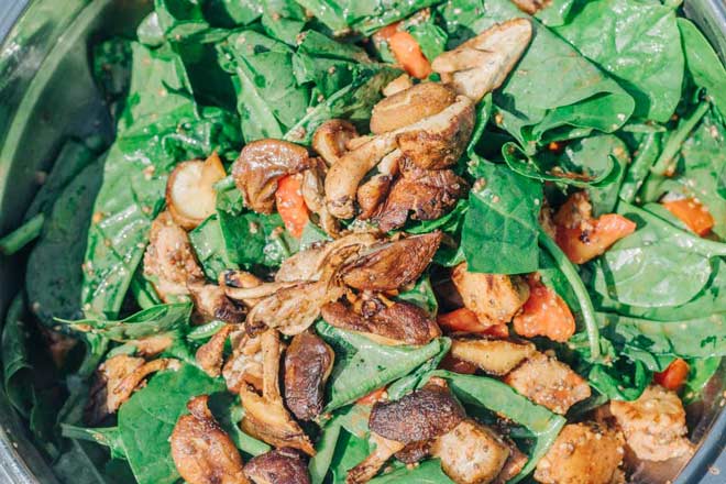 Irgendwie schaffen wir es an ein paar frische und gute Lebensmittel zu kommen die es auf den Märkten am „West End“ Jamaikas sonst selten gibt. Frischen Blattspinat, ein paar Pilze, Süßkartoffeln und Tomaten, ein leckeres Hähnchen und saftiges Steak!