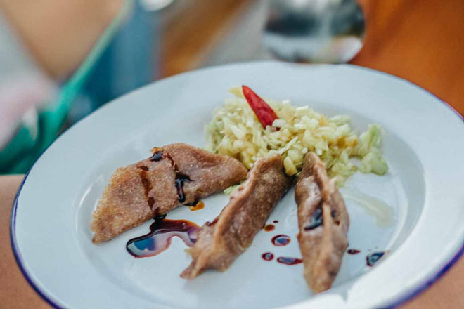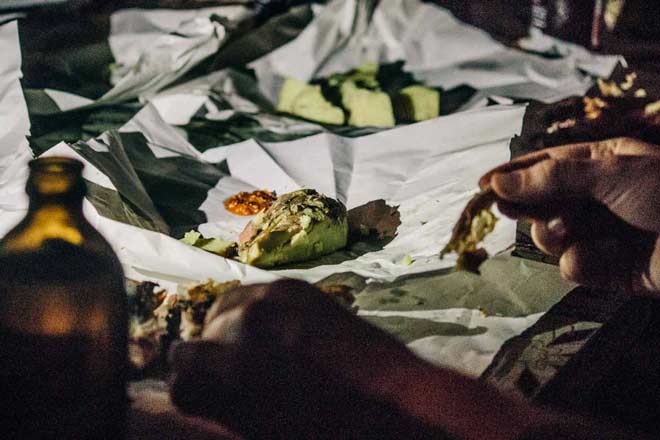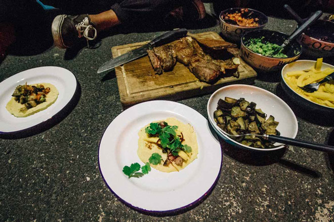 The meat gets cut in fine slices and everybody takes it with their bare hands. Perfect! That's how it should be - we enjoy the small things really big!