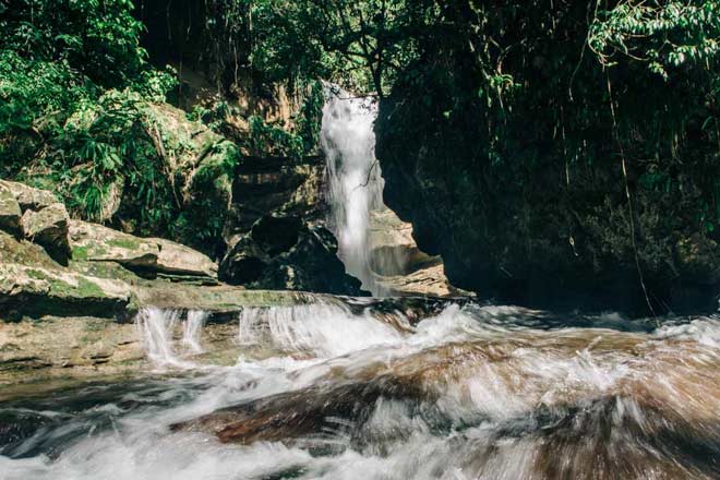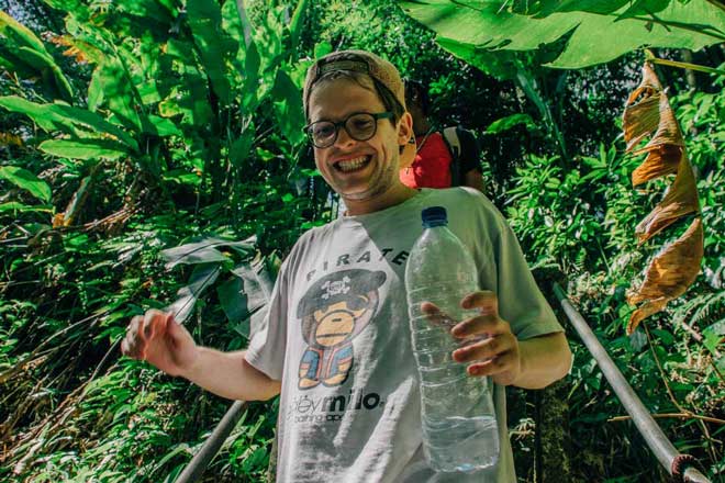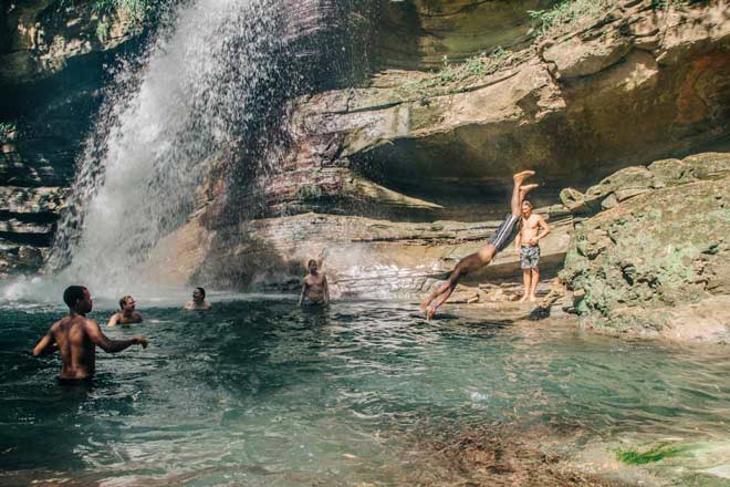 T-shirt aus und rein ins Wasser. Erst als wir versuchen ganz nah zum Wasserfall zu schwimmen, pfeift uns jemand zurück. Aber da wir das wegen der Strömung eh nie geschafft hätten, stört uns das wenig. Zurück an Land geht’s nun stets bergauf, vorbei an lauter Wasserfällen und Becken, bis man schließlich eine ganz besondere Wasserwelt erreicht. Der Fluss hat sich in hunderte kleiner Arme geteilt, es gibt ruhige Seen und viele Wasserfälle, das ganze in einem Wald mit kleinen Pfaden und Brücken. So stellen wir uns die Everglades vor, nur die Krokodile fehlen.