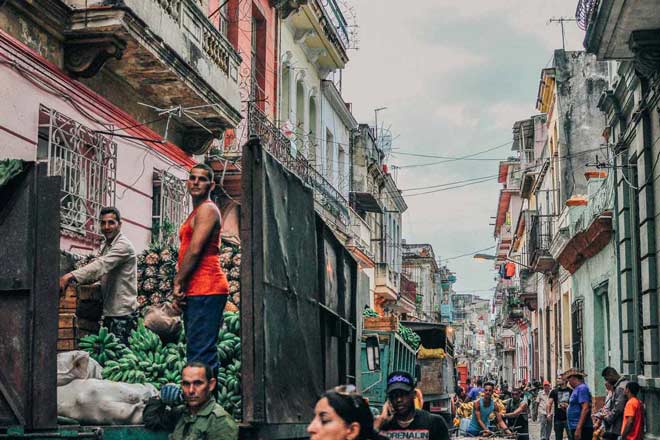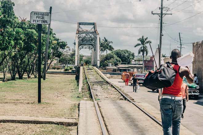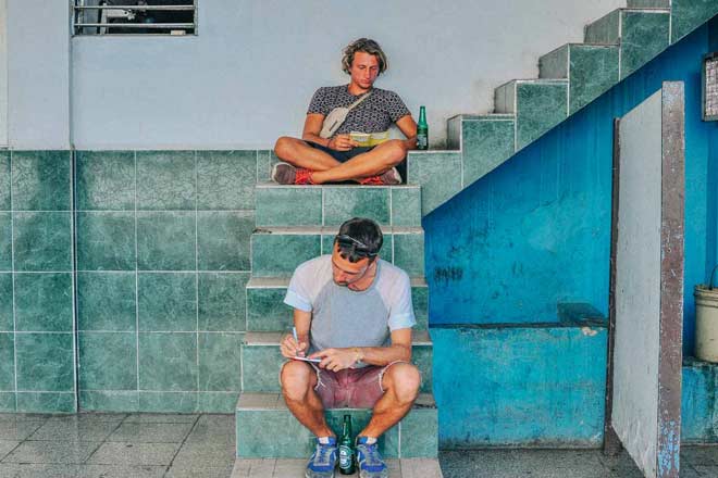 But Fruits, vegetables, bread, meat, eggs, soap and rice they get with food tickets or they pay with peso, the local currency. Stuff like mangos (9 cents) and pineapple (25 cents) are pretty cheap. On my way home I buy a bottle of rum and some chips and walk past the spot where I met the three men. There is only one of them left, but a Canadian and his Cuban friend who lives in Canada, have joined him. Somehow, everyone here is related. The Canadian Cuban tells me that the three Cubans would have liked to lead me to the gas, but they were afraid that the police would see them with tourists. This could have easily become a problem for them. As soon as the police suspects them to have any illegal business with tourists, they get in trouble. And the police always knows due to the monitoring system. An analogous monitoring system where neighbors control their neighbors. What? That’s evil! We learn a lot about Cuba in our first days, the people are lovely but the government and its rules a weird, complicated and sometimes really stupid.