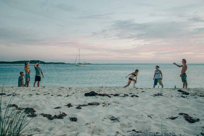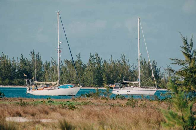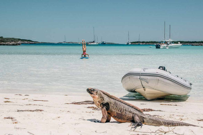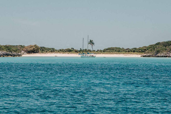 Angewidert von diesem Anblick und dem Umgang mit den Schweinen, holt er alles an Trinkwasser aus dem Beiboot und schüttet es in den leeren Trog. Die Schweine rasten komplett aus, quieken wie wild und rennen zum Wasser. Man hat sie bis dahin noch nie so glücklich und lebendig gesehen. Gebt den Schweinen Wasser, sonst ertrinken sie in ihrer Pisse! Bis auf die armen Schweine sind die Bahamas ein wunderbares Segelrevier mit viel Ruhe, Sand, Sonne und Fischen.
