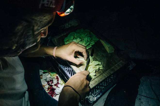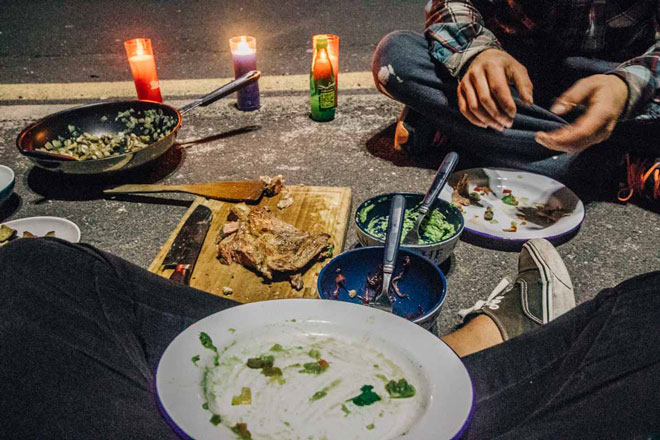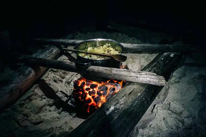 In einem großen Topf über der Glut zaubert er ein Kartoffelcurry vom allerfeinsten. Die Atmosphäre am Feuer, der Sternenhimmel, der Rotwein, das einfach Selber-gemachte setzt diesem besonderen Abendessen noch eine dicke Krone auf. Wir singen und sind glücklich. Ein Moment der uns verbindet, umspannt mit der Aussicht auf eine hervorragende Zeit in Kuba.