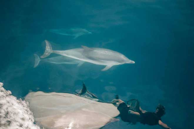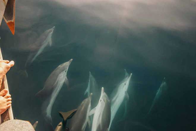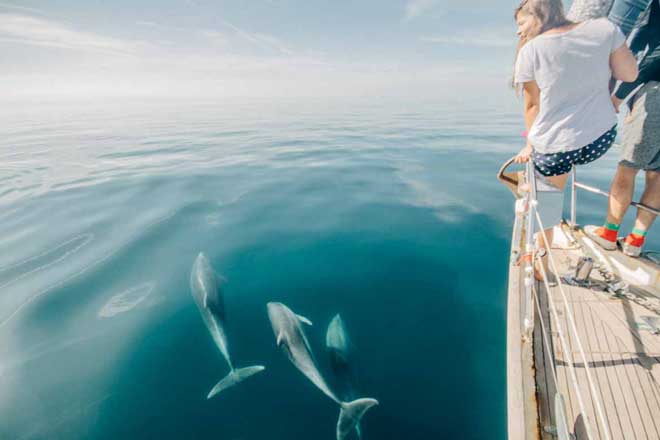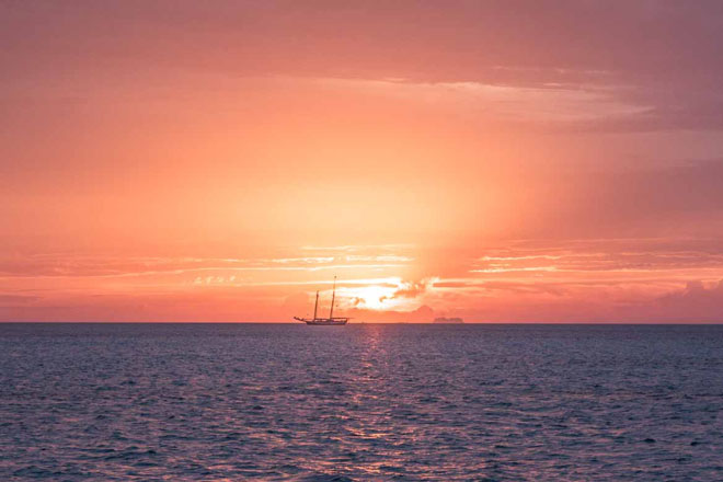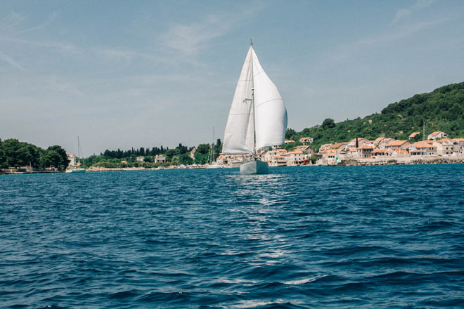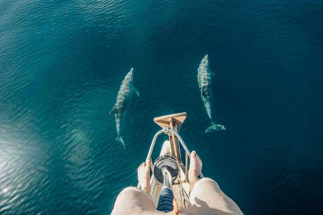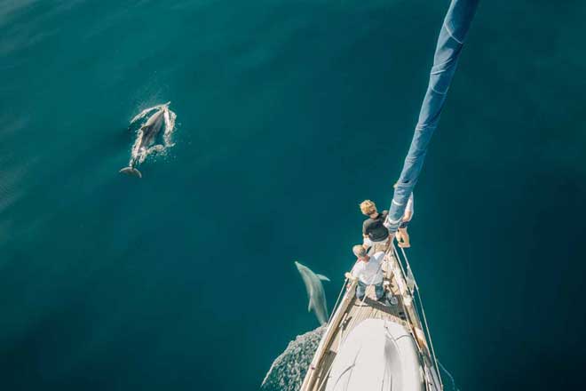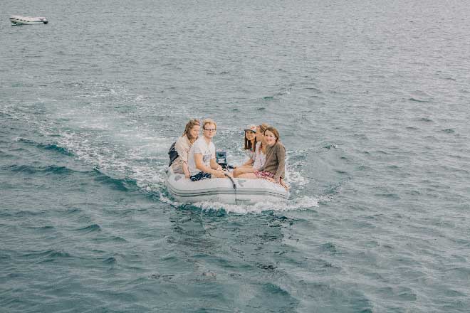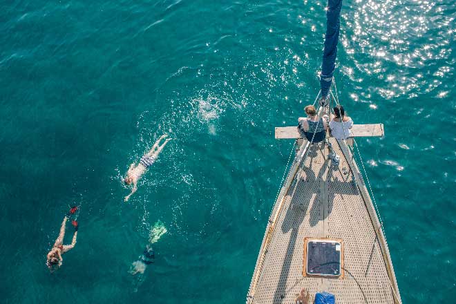 The shallow and clear sea, combined with the special landscape is a phenomenal experience. We snorkel every day and explore every island we can. Every now and then we see dolphins, we drop everything and the whole crew behaves like children. Time flies by and we forget which day it is. Only when our food and wine are gone we set sail back to the coast. With the sun on our backs we open our last bottle of wine, while our lady points us the way.