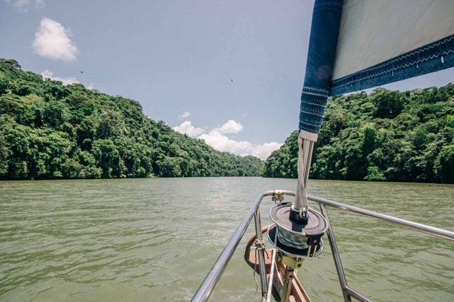Es ist genug. Die Heimat ruft. Das Wasser hat seine 26,5 Grad erreicht. Bald ziehen hier vielleicht die schlimmsten Hurrikane durch, die die Karibik je gesehen hat. Wir machen uns erst einmal vom Acker. Zuvor bringen wir die LIV aber noch an ein schönes, ruhiges Plätzchen. Es geht in den Rio Dulce nach Guatemala. 900 Seemeilen. Zu dritt kreuzen wir die Bahamas in südöstliche Richtung und setzen über nach Santiago de Cuba. Vor Guantanamo stehen wir einen Tag in der Flaute. Seit ein paar Tagen warten dort schon die beiden Wandergesellen Morten und Marius mit fast abgelaufenem Visum. Sie sind nach zwei Monaten durch - mit Kuba - und möchten weiter nach Mittelamerika. Normalerweise fliegen sie nicht, haben kein Handy, kein Geld, sind nicht erreichbar und arbeiten für Kost und Logis. Ihre sieben Sachen haben sie in Tüchern zusammengebunden und auf ein Holzgestell geschnürt, das sie selbst gebaut haben. Ihre Kluft ist Eintrittskarte, Arbeitskleidung und Schlafsack in einem. Marius, aka der Rasta, ist seit vier Jahren unterwegs. Nach drei Jahren dürfte er gemäß der Tradition wieder nach Hause. Seine Mutti wird sich freuen. Aber jetzt segeln wir mit den beiden nach Jamaika, gehen dort einkaufen und bringen die LIV an einen Hurrikane-sicheren Ort. Ein Norweger hat uns den Rio Dulce zwischen den Bergen Guatemalas empfohlen. Mit ordentlich Mehl im Gepäck zaubert Morten einen Hefezopf nach dem anderen.