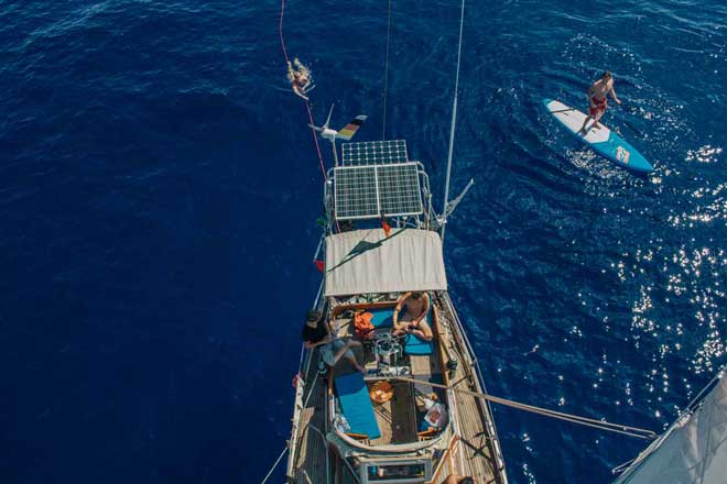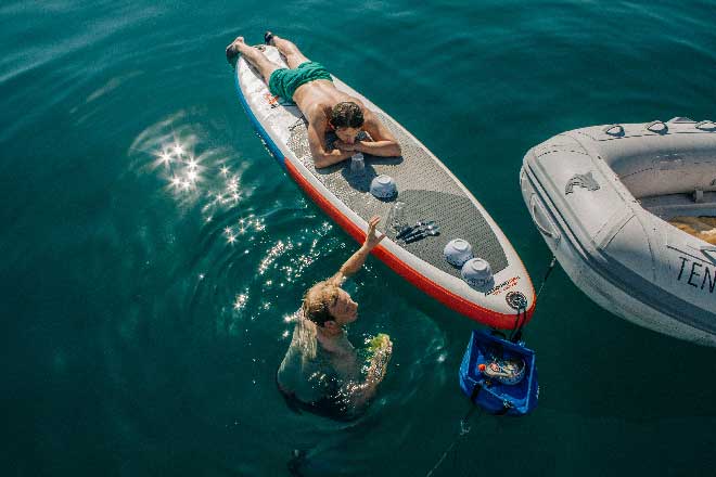 We open the sleeping bag -> jump in the sea –> lacquer the bed foots –> breakfast -> renew the fugues -> lunch -> swimming -> siesta -> vap –> renew the fugues -> wine -> fag -> renew the fugues -> STILL renew the fugues -> no more desire -> SUP -> swimming -> fag -> tinder –> dinner -> wine -> longpape -> a dinghy ride to the beach -> special entrance -> dancing all night long -> beautiful people -> sharing our treasures -> sink my phone -> taxi -> club barbarella -> sunrise -> pizza -> taxi -> dinghy -> enter the sleeping bag -> open the sleeping bag -> swimming -> lacquer the bed foots -> breakfast -> new fugues -> swimming -> siesta -> vap -> photo session