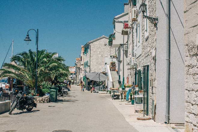 Südlich von Zadar, auf dem Weg von den Kornaten zu den Krka Wasserfällen liegt Tribunj, ein kleines Hafenstädtchen, die Altstadt liegt auf einer kleinen Insel in der Bucht. Für wenig Geld legt man hier an der Promenade an, direkt an einem der vielen Restaurants oder Bars. Also Anlegen, an Land gehen, in den nächsten Liegestuhl fallen, Flasche Wein bestellen. So oder so ähnlich lässts sich leben. Durch seinen Charme kommen wir gerne hierher, denn die vielen alten Häuser, die verwinkelten Gassen und die vielen Bars sind definitiv einen Abstecher wert.