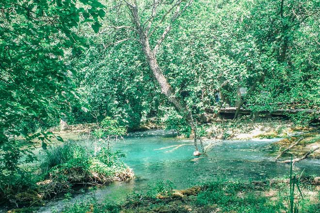 Only as we try to reach the cascades we get whistled back. But as the flow is really strong we wouldn’t have reached the cascades anyway. Back on the path it’s going straight up the hill, next to dozens of cascades. As we reach the top of the hill we enter a new, outstandingworld. Under the trees of a forest, the river splits into hundreds of tiny arms, with bassins and cascades, wild areas and calm pools. You can explore this area on narrow paths, connected by wooden bridges. The Europeen Everglades, luckily without any crocodiles.