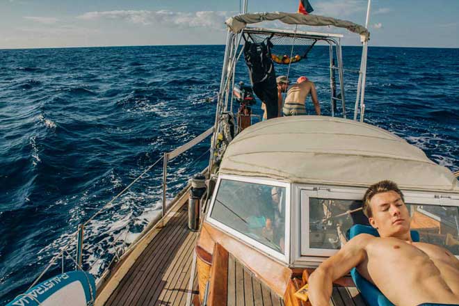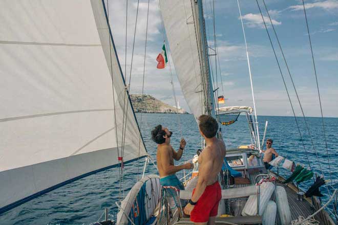 “LAND, HO” Finally. 12 days ago we set sails in Croatia to sail to Sardinia and now we can see it. Right here in front of us. The first part of our tour is nearly done. After 850 nautical miles (1574 km) of mediterranean sea. We passed many beautiful places but visited only few of them. Most of the time we were on the open sea, sailing day and night. Alone with a fascinating deep blue ocean, six boyz and LIV. It was awesome. A life completely different to the life we left behind. We lost the sense of time and the days passed into each other. All stops we made were nice and exciting but we always wanted to get back on the ocean.