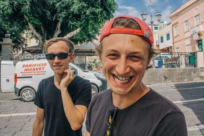 When we try to repair things we usually break more than we fix. Luckily this leads sometimes to random stopovers which turn out to be pretty sick. Best example is our stay in Milazzo, Sicily. Planned as a short stop for one night, we had to stay for two and had the chance for a closer look on this beautiful mediterranean town. Typically for southern Italy not everything is shiny and there are a few spots looking pretty fucked up. Like the big rafinery right across the bay for example. At the restaurant where we enjoyed our delicious Italian Pizza, our waiter gave us the hint of the day! Instead of going to the hipster jazzclub we went to the night before, he told us to go up the hill. There is an old castle.