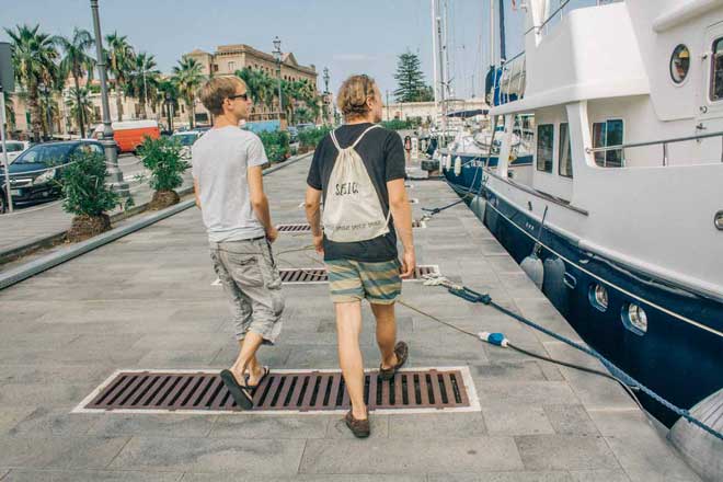 „Hey guys, you have the nicest sailing yacht here in the harbour“. Normally we hear it from other people, talking about LIV. But this time we told our neighbors what they probably already knew. The american SY Patriot is a young but classy sailing yacht. Her blue hull is two times longer than LIVs. With her 46 tons she looks just perfect. The couple sailing this beauty was already surfing in Dominique/Caribbean, speared lobsters in the Bahamas and is going to spend the next seven months around Sicily and southern Italy. Every now and then they meet up with their boatie friends wherever they are.