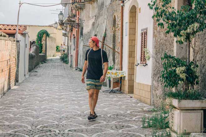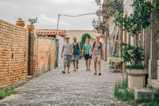 Zögerlich deshalb, weil gefühlt ganz Milazzo immer noch die Promenade entlang flaniert oder dort feiert. Doch wir werden schnell überzeugt, die richtige Entscheidung getroffen zu haben. Die ganzen Straßenzüge rund um die mittelalterliche Burg sind voll gestopft mit Menschen! Es legen parallel zueinander, in ein- bis zweihundert Meter Abstand, ca. sechs DJs gleichzeitig auf und der Alkohol fließt in Strömen. Wer BOCK auf laute Musik und starke Cocktails, ekstatisch tanzende italienische Männer und sehr (also wirklich sehr sehr) schöne Italienerinnen hat, die alles shaken was sie haben, der ist hier genau richtig! Schnell holen wir uns ein paar Drinks und lassen das ganze auf uns wirken. Die gesamte Region versammelt sich hier. Man kennt sich. Entsprechend leicht fallen wir auf; aber das ist schon okay. Einziges Manko ist, dass man hier mit Englisch nur bedingt weiterkommt.