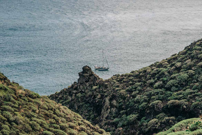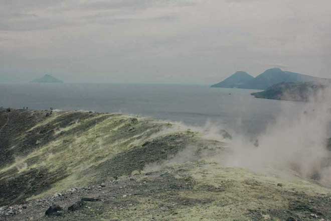Die südlichste Insel der Äolen soll es für uns sein, die Isola Vulcano. Denn die liegt quasi auf dem Weg nach Sardinien und außerdem ist sie (glauben wir zumindest) nicht sehr bekannt. Wir hoffen auf möglichst wenige Touristen. Einen Vulkan hat sie auch - man beachte den Namen ;) - und es gibt heiße Schlammbäder. So etwas wollen wir sehen! Es gibt eine schöne Ankerbucht mit schwarzem Vulkansand und einem netten Fischer, bei dem wir uns gleich mit Fisch eindecken. Der Vulkan ist für uns fränkische Bayern schnell bestiegen. Beeindruckend ist, wie verschieden die Natur auf so einer kleinen Insel sein kann. Von Kakteen, Palmen und Urwald-Gestrüpp bis hin zu staubiger Einöde und schönen Kletterfelsen.
