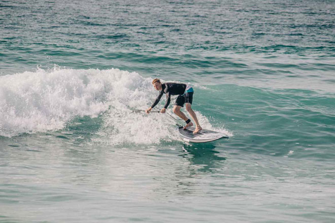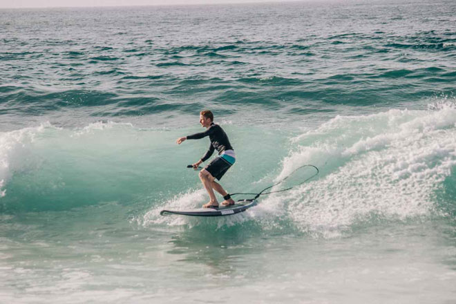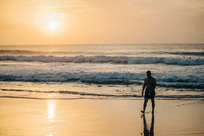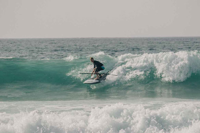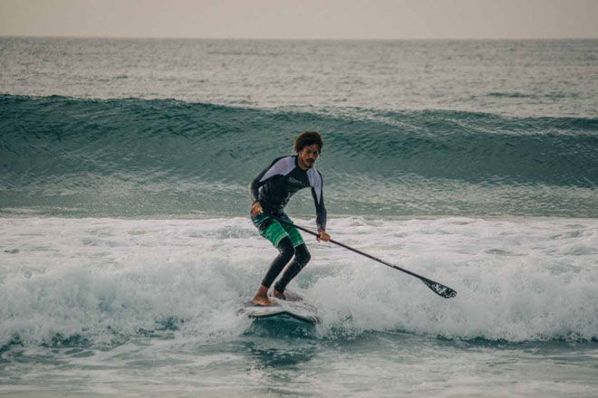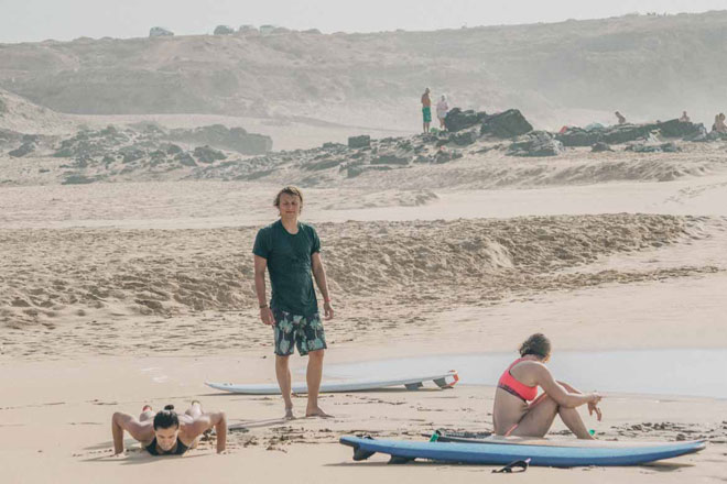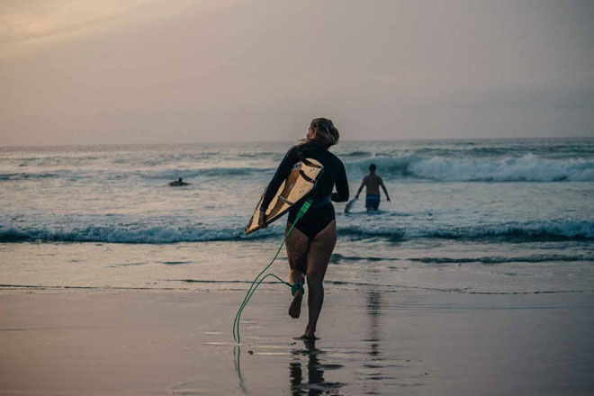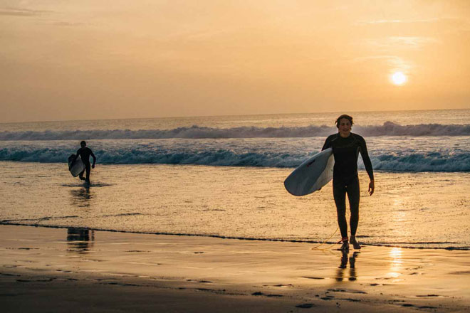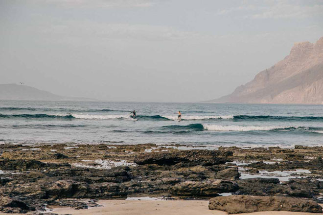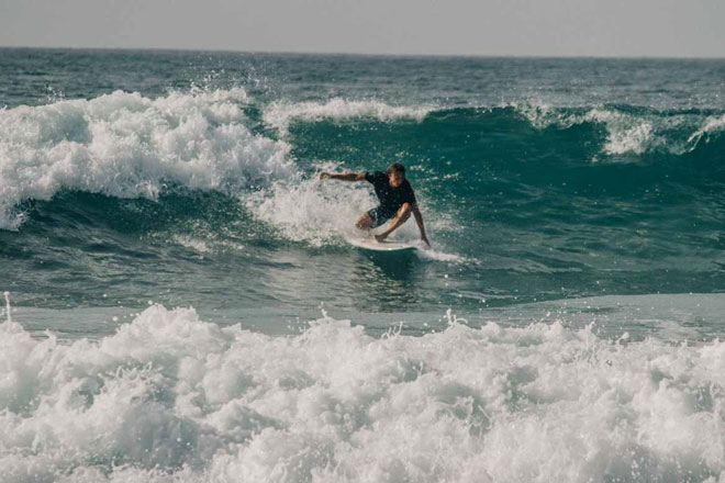 A nice extra is the path on the left hand side of the bay, where you get to a rock at the end of the bay from which you can jump behind the line up. A paradise for us who hate paddling out all the time. Beside surfing, the bay is a great place to chill and enjoy the weather. There's a sandy beach and next to the rock on the left hand side you'll find the private beach of a luxury hotel.