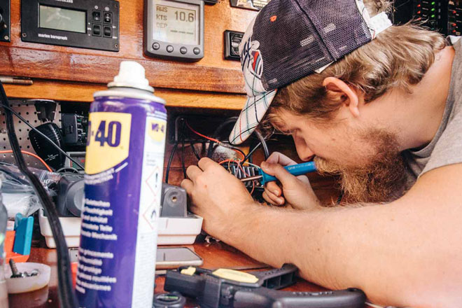 Liv is a noble young lady at the age of 47 years. Half a year ago we saw her for the first time and we were immediately crazy about her. It was love at first sight, so we couldn't resist doing everything necessary to finally call her „our own“. At this time we hadn't realised that Liv had the wish to be remodelled during winter. As it's normal for a classy lady, the first facelift should be in her late forties. We couldn't and still can't resist satisfying her wishes and making her shine once again. Aside from some cosmetic operations, the motor and the wooden teak deck were the focus of our pampering programme. At the same time, we reduced Liv’s huge inventory (in the hull). As our limited space has to be used in the best possible way, we will only take tools of the best quality and durability on board.