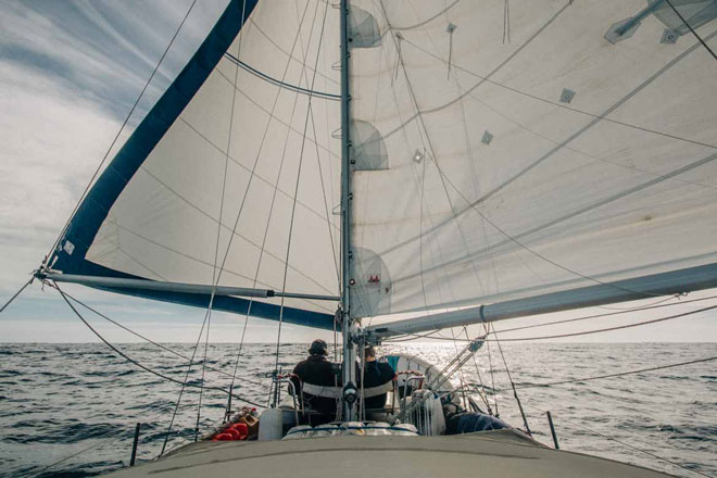 Sailing is a sport and lifestyle with many aspects and different faces, it isn't always sunny and warm with perfect winds. That's obvius and i think that's what makes this lifestyle unique. The leg we finished now wasn't one of the sunny ones, with perfect winds. No, it was exhausting, cold and rainy, and the winds sucked. We started in Ibiza, our goal was to reach Malaga within 5 days. Our weather forecast announced strong westerly winds at the end of the week so we wanted to enter the street of Gibraltar as soon as possible.But with 140 nm (250km) the strong winds arrived and the waves became higher and higher – we had to fight for every mile we got closer to the cape we had to round.