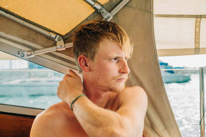 Schnell landet der erste im Wasser. Nicht schon geil genug, dass sich darin die Sterne reflektieren. Jetzt reagiert sogar das Plankton auf jede Bewegung im Wasser und fängt an zu leuchten. - Not Bad! Mother Nature, we love you! - Platsch, Platsch, Platsch, die Nächsten folgen. Zwei von uns sitzen auf halber Höhe im Mast, da ist man den Sternen noch näher. Und man sieht das leuchtende Plankton. Die ersten Klamotten fliegen vom Mast, dann zwei Schreie. 10 Meter im Dunkeln und man muss ein gutes Stück nach vorne springen. Das kitzelt ordentlich. Dann macht es zweimal Platsch, deutlich lauter! Überall leuchtendes Plankton, warmes Wasser. Auftauchen, die Sterne sehen, ein dickes High Five. Einfach SICK. SEASICK.